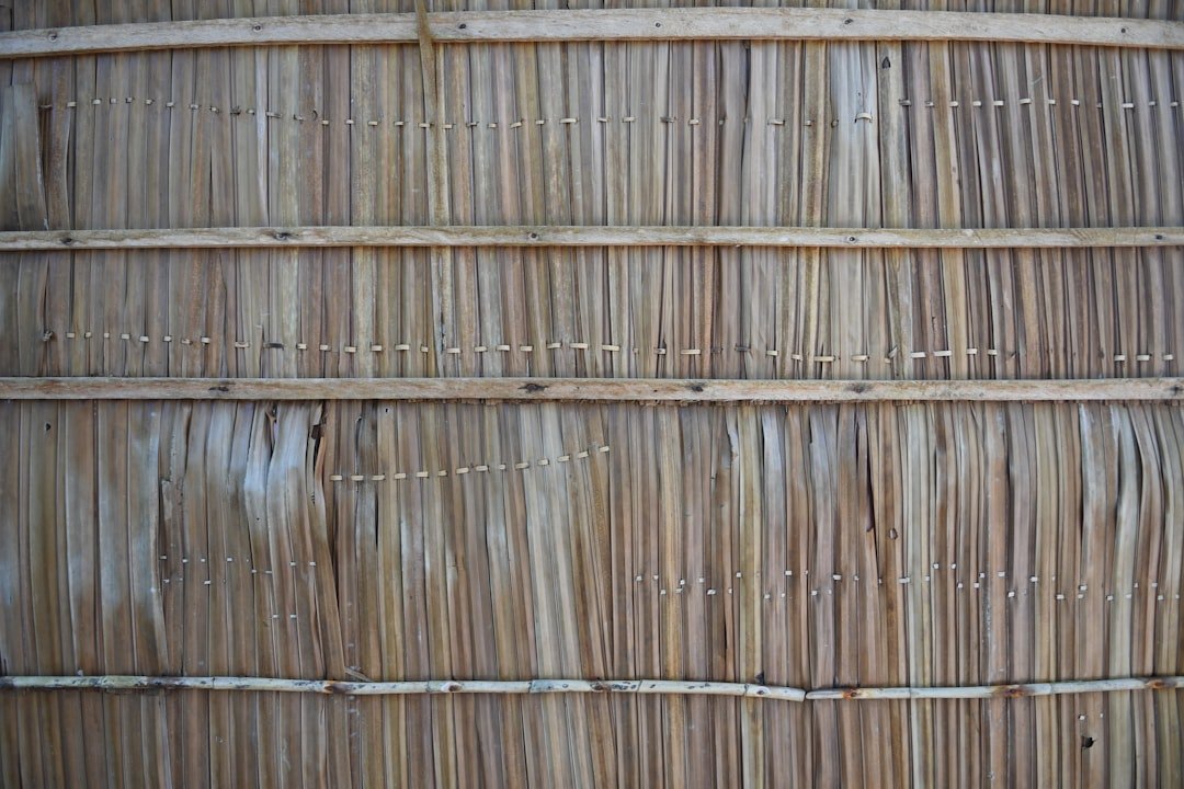 alt=”a close up of a wall made of bamboo” title=”Close-up of bamboo wall shelves India”